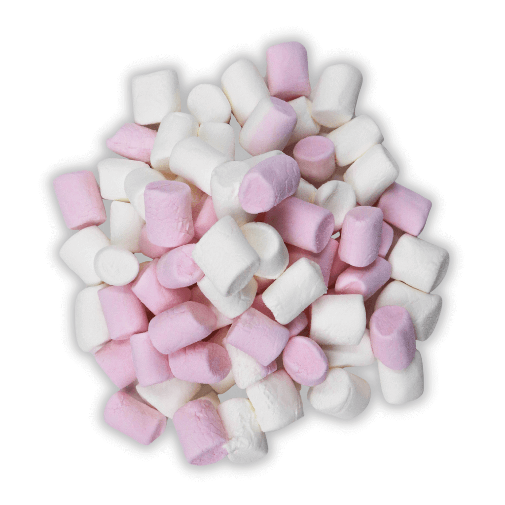 Candycrave halal mini pink and white marshmallows are 1kg wholesale bags, full of mini mallows that are halal approved and made by Candycrave.